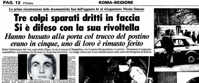 Per questo episodio Nicola Simone ottenne la Medaglia d’oro al Valor civile con la seguente motivazione: “Funzionario di Pubblica sicurezza, pur consapevole del gravissimo pericolo cui si esponeva, assumeva l’incarico di condurre e coordinare delicate e pericolose indagini, che portavano alla conclusione di brillanti operazioni. Vittima di un tentativo di sequestro da parte di alcuni terroristi armati penetrati con inganno nella sua abitazione, con estremo coraggio e decisione reagiva prontamente con l’arma in dotazione. Sebbene gravemente ferito, colpiva a sua volta un criminale, e messi in fuga gli altri aggressori ne consentiva poi, l’individuazione e l’arresto“.